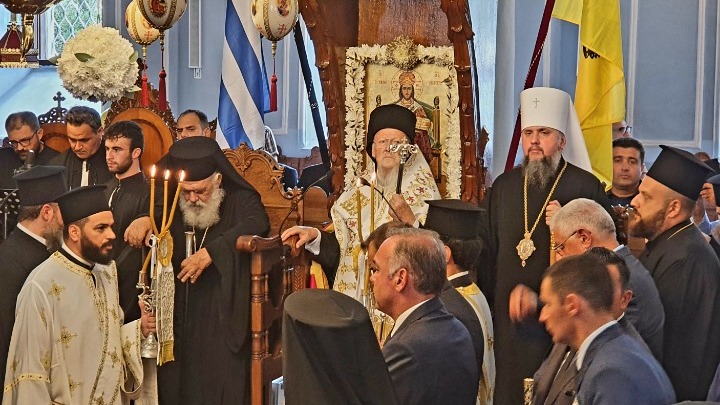Θερμή ήταν η υποδοχή του Οικουμενικού Πατριάρχη, Βαρθολομαίου στη Θάσο, συνοδευόμενος από τον Αρχιεπίσκοπο Αθηνών και πάσης Ελλάδος, Ιερώνυμο και τον Μητροπολίτη Κιέβου και πάσης Ουκρανίας, Επιφάνιο.