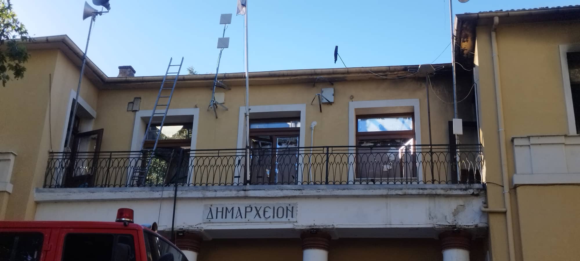 Από τη φωτιά πού εκδηλώθηκε στη 01:20 το πρωί, καταστράφηκε ολοσχερώς ο πρώτος όροφος του ιστορικού δημαρχείο που είχε χτιστεί το 1936, καθώς υποχώρησε η ξύλινη σκεπή του, ενώ σώθηκαν οι δύο πτέρυγες, δεξιά και αριστερά, πού θα χτιστούν αργότερα.